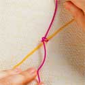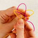 ![]() | 2. Place the first string over the second, forming a loop, repeat with the second string. |