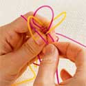 ![]() | 2. Place the first string over the second, forming a loop, repeat with strings 2 and 3. |