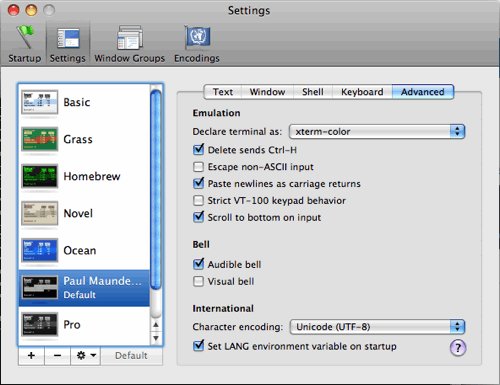 - Go to Terminal > Preferences > Settings> Advanced